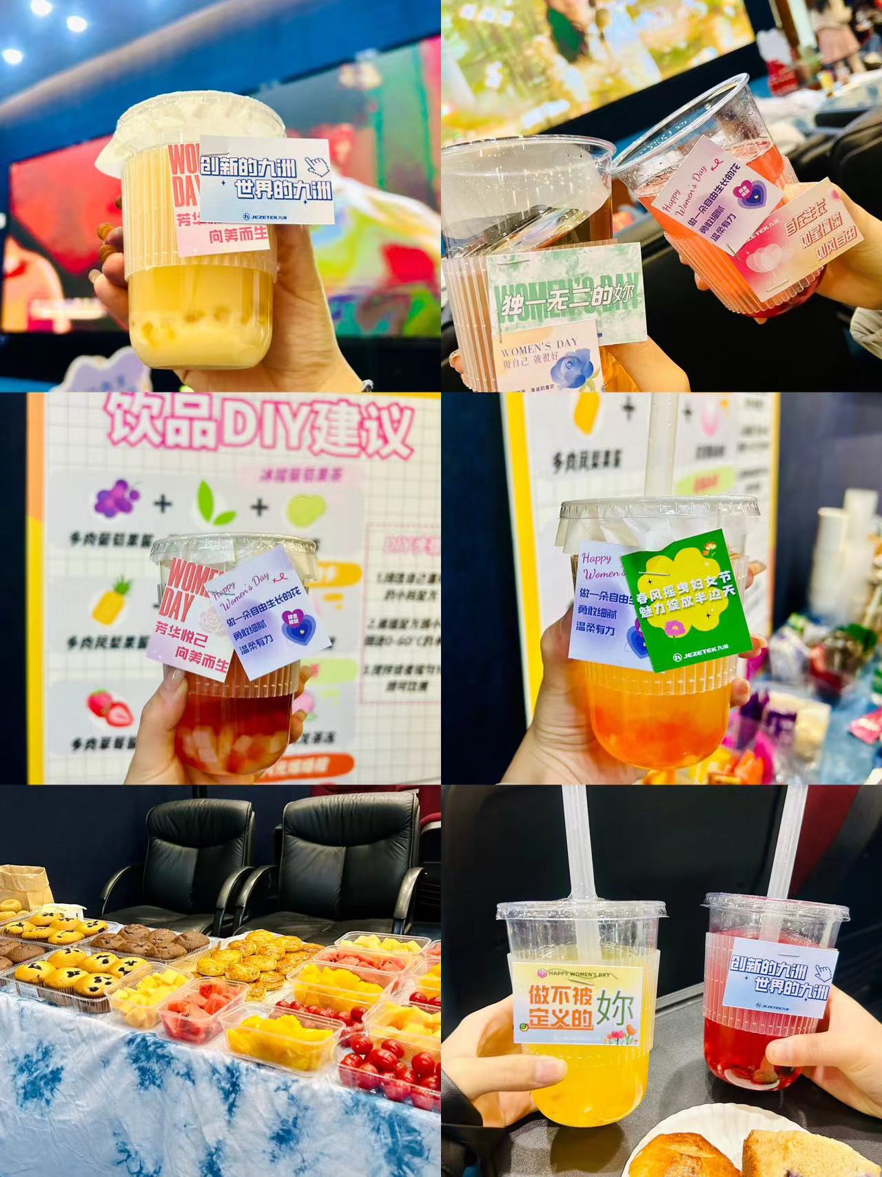 公司為大家準(zhǔn)備了果醬、茶底、小料、水果等幾十種豐富的飲品制作材料,大家對(duì)配料比例、調(diào)味選擇、色彩搭配和外部包裝等方面進(jìn)行創(chuàng)意設(shè)計(jì)來(lái)調(diào)制飲品。不一會(huì)兒一杯杯色彩繽紛、果香四溢、造型各式的專屬飲品制作完成,大家都沉浸在自己發(fā)揮想象、親自動(dòng)手制作飲品的幸福感和滿足感中。