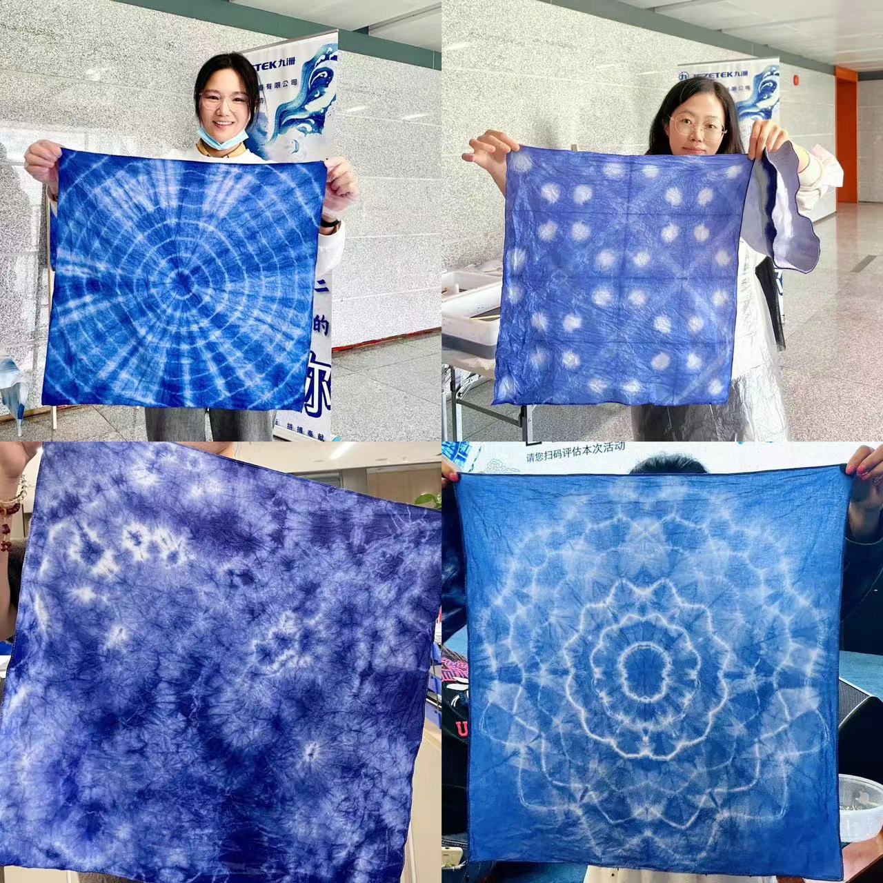 大家在收獲快樂(lè)的同時(shí),也直觀感受到扎染的藝術(shù)魅力,扎染沒(méi)有完全一樣的圖案,每一個(gè)作品都是獨(dú)一無(wú)二的,就像我們每個(gè)人一樣都擁有獨(dú)一無(wú)二的閃光點(diǎn)。