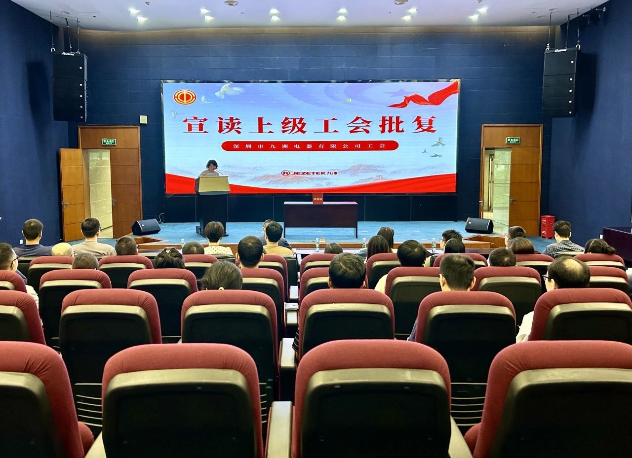 公司副總經(jīng)理秦友華宣讀了粵海街道總工會《關(guān)于深圳市九洲電器有限公司成立工會的批復(fù)》以及《關(guān)于深圳市九洲電器有限公司第一屆工會委員會委員(主席)、經(jīng)費(fèi)審查委員會委員(主任)、女職工委員會委員(主任)候選人的批復(fù))》。