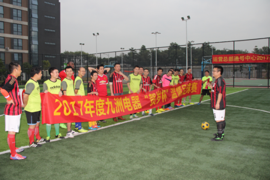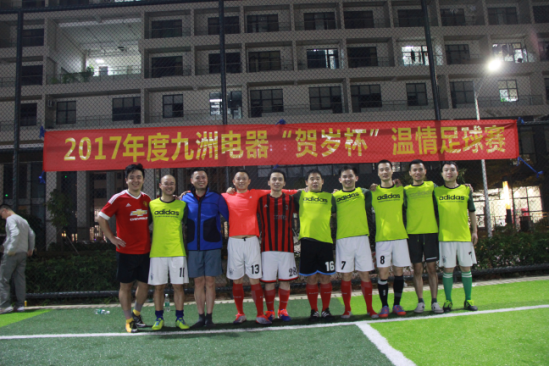 為表達新老隊員對深九足球的大力支持。深圳市九洲電器足球隊特于2017年12月26日下午五點在橋城東足球場舉辦了一場以“大愛九洲,溫暖九洲”為主題,  由深九足球隊新老成員組成的“賀歲杯”溫情足球賽。本次球賽特別邀請人員有前三任隊長,分別為:成立深九足球隊的首屆隊長,袁隊;盡職盡責的第二屆隊長,楊隊;提高了球隊熱情的第三屆隊長,羅隊。感謝他們為球隊建設所付出的努力和熱情。另外,球賽還特別邀請了:深九元老隊員2位參賽,感謝他們對球隊的幫助與付出。為了賽場秩序有條不紊,特邀請裁判一枚。