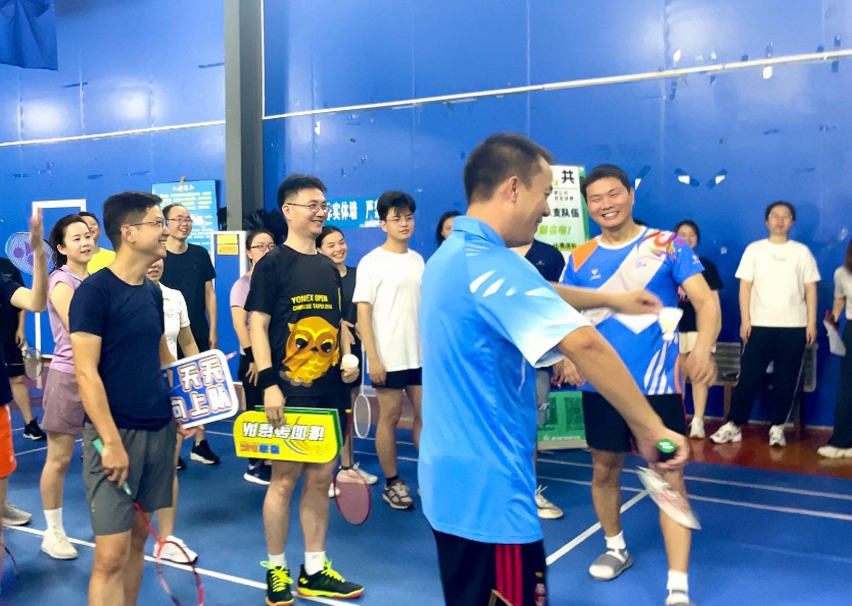 比賽正式開始,平時在工作中干勁十足的同事們,在球場上同樣的斗志昂揚。你來我往,你守我攻;小小的羽毛球在持續的擊打聲中,劃過一道道白色的弧線;一次次揮臂、跨步、登跳、吊球、扣殺,都充滿力量、熱血沸騰。加油聲此起彼伏,活動熱度持續升溫、現場氛圍更是愈發熱烈。