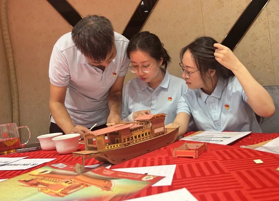 下午,黨員們開始了“重返1921”紅色劇本研讀活動,旨在注入黨史學習年輕態,解鎖主題黨日新模式,主要分為“星星之火-前往上海”、“七月流火-望志路106號”、“八月驕陽-嘉興南湖紅船”等內容,通過觸發任務、全員解密、紅船制作、劇本演繹等沉浸式體驗,帶領黨員們穿越歷史時空,走進崢嶸歲月,感悟黨史,感悟紅色文化,致敬革命先輩,汲取奮進力量。