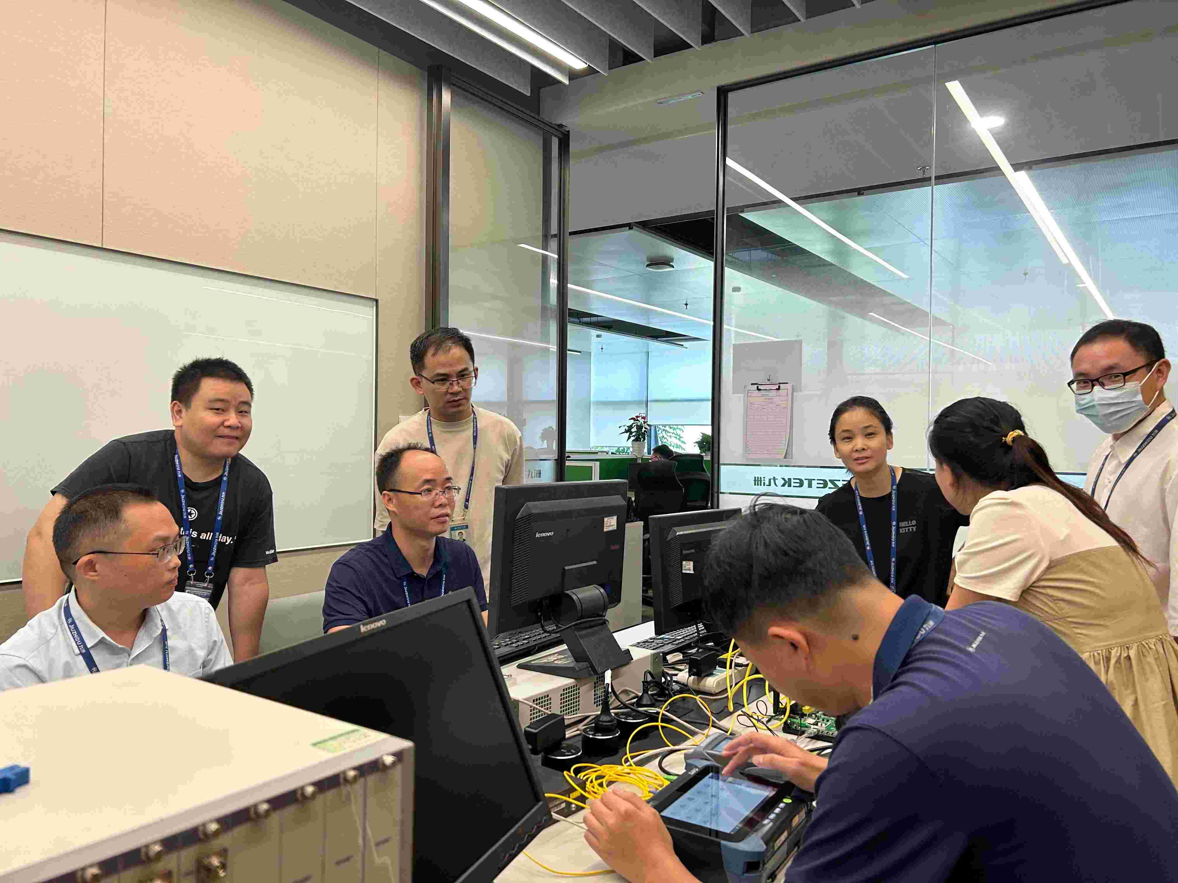 該項(xiàng)目投產(chǎn)前,項(xiàng)目小組面臨開(kāi)發(fā)技術(shù)難度大、變動(dòng)大等多重挑戰(zhàn),大家用極高的執(zhí)行力和配合度迎難而上,多方有序協(xié)調(diào),工程師們更是深知測(cè)試是新產(chǎn)品走出公司,正式邁向市場(chǎng)的重要關(guān)卡,耐心認(rèn)真、心懷敬畏地反復(fù)測(cè)試,不放過(guò)對(duì)任何細(xì)節(jié)的精準(zhǔn)把控,努力做到極致。據(jù)悉,該項(xiàng)目是公司在OTT+PON的全新融合型產(chǎn)品形態(tài)上斬獲的第一筆訂單,標(biāo)志著深圳九洲電器在數(shù)通領(lǐng)域邁向了新征程。