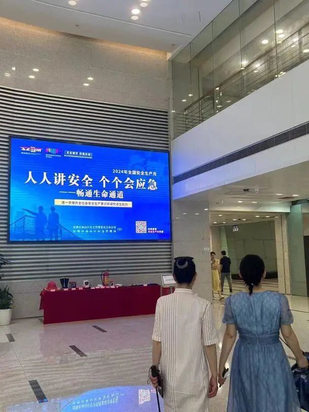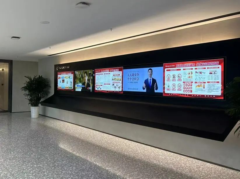 宣傳電子屏處,循環播放“安全責任制”、“暢通安全通道”、“強化安全防范措施”等宣傳海報和視頻