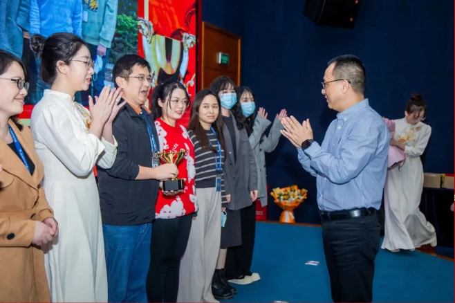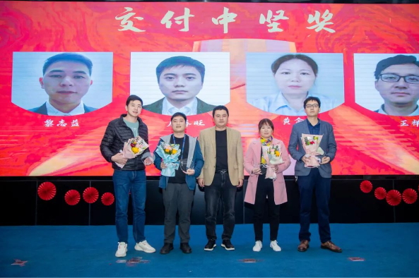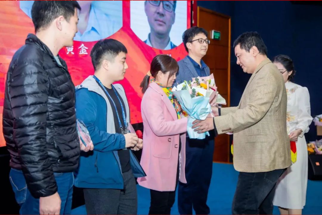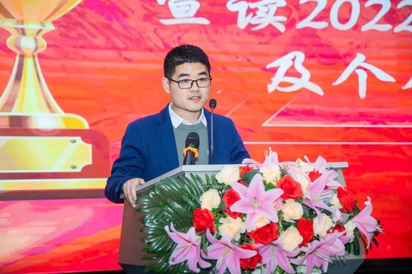 隨后,深圳九洲電器副總經理石旭科宣讀“2022年度優秀團隊及個人表彰文件”。頒獎儀式隆重開啟,公司領導為8項個人獎、2項團隊獎、2項專項特別獎的獲獎者頒獎。
