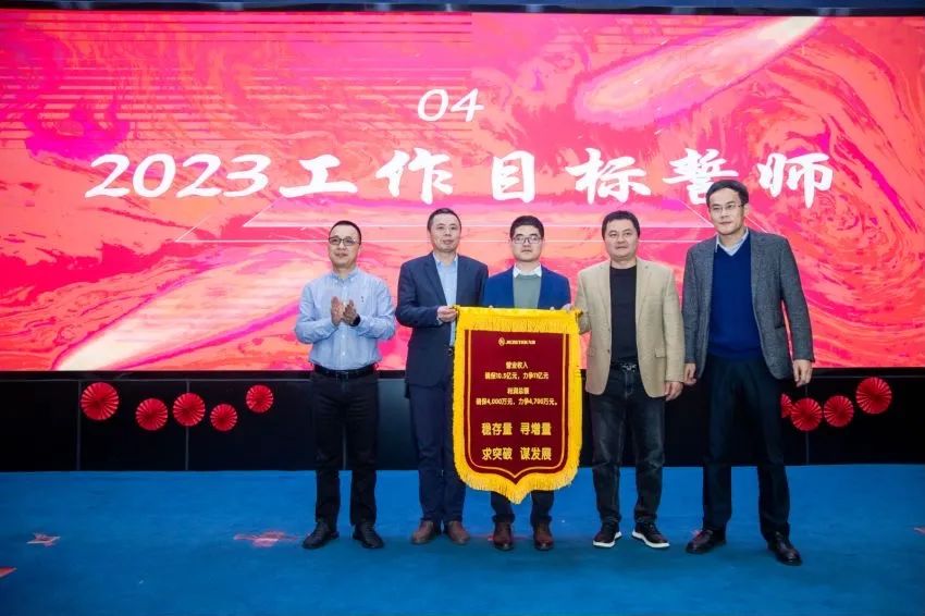 “征途萬里風正勁,轉首關河氣象新”,為激勵深圳九洲電器實現目標,蘭董事長為公司管理團隊授旗,韓總帶領管理團隊進行宣誓,誓言錚錚、一言九鼎。深九人吹響了沖鋒的號角,雷響了沖刺的戰鼓,我們必將在2023年的戰場上全力以赴,圓滿完成任務!