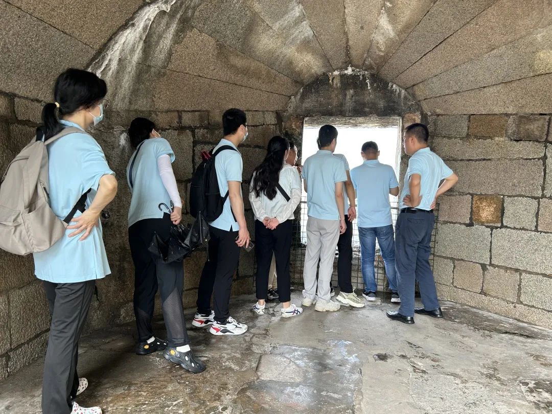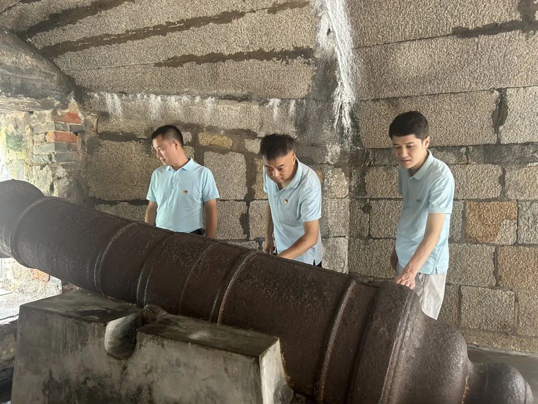 “遙觀碧海出滄灣,滾滾波流過峽關”,平靜的海面曾經炮火紛飛,威遠炮臺歷盡風雨洗禮,黨員們用手輕撫著他,感受著歷史的溫度,是那么蒼涼、悲壯,仿佛愛國英雄關天培誓死守護炮臺、守護國土的一幕重現。